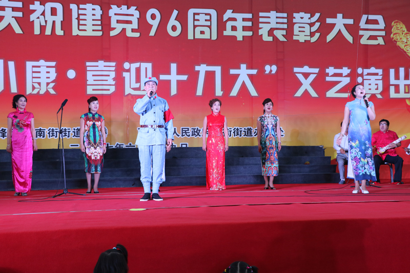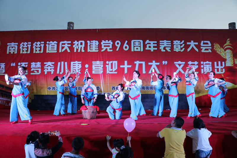 为庆祝党的96华诞,重温党的光辉历程,继承党的优良传统,6月29日晚,南街街道在和谐广场召开庆祝建党96周年表彰大会暨“逐梦奔小康,喜迎十九大”文艺演出,向伟大的党献上诚挚的祝福。