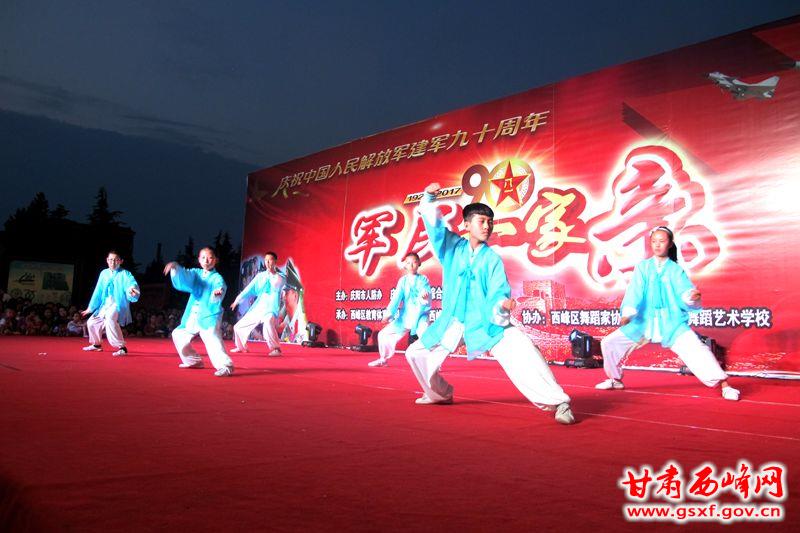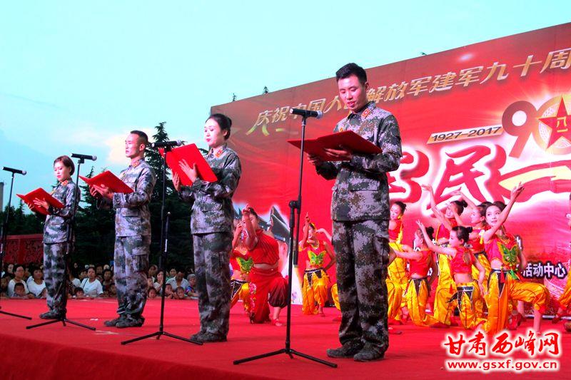 8月1日晚,东湖公园西门广场上灯光璀璨、热闹非凡。由庆阳市人防办、西峰区委宣传部、庆阳市青少年综合实践基地主办,西峰区教体局和西峰区青少年宫活动中心承办的纪念建军90周年庆“八一”军民携手一家亲文艺展演在此举行。